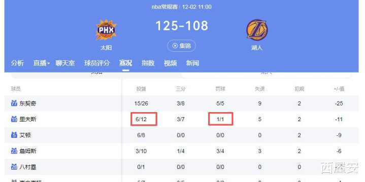 此外东契奇休赛之前12月2日对阵太阳队的比赛里弗斯12中6仅得到16分(1次罚球),本场比赛东契奇砍下38分。