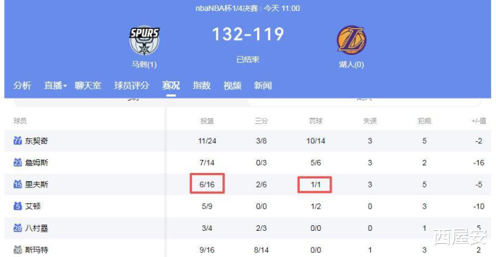 12月11日NBA四分之一决赛湖人119-132不敌马刺,彻底告别NBA杯,东契奇复出的近两场比赛,虽然个人数据异常漂亮,但是球队确实1胜1负,里弗斯也连续拉垮2场,一场15分,另外一场仅得到11分,这些暴露出湖人一巨大隐患,若不及时调整恐怕夺冠无望。